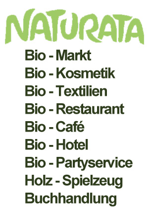 Neben einem 350qm großen Naturkost-und Naturwarenmarkt beherbert die NATURATA ein Restaurant mit Cafe sowie 6 geräumige Gästezimmer, die dem Komfort eines Hotels in nichts nachstehen. Im Laden werden naturbelassene Lebensmittel, Obst und Gemüse aus biologisch-dynamischem Anbau, vorzugsweise in Demeter-Qualität angeboten. Aber auch Naturwaren und Naturtextilien, Waschmittel, Naturkosmetika und vieles mehr sind hier zu haben. Das NATURATA-Restaurant mit schöner Gartenterrasse bietet eine frische Küche mit mediterranem Touch. Die biologischen Produkte stammen zu 80% aus der Bodenseeregion. Angebot: Anschrift: unser Betrieb ist Bio-zertifiziert Öffnungszeiten: Restaurant-Cafe: Gästezimmer: Website: | ![]() ![]() |